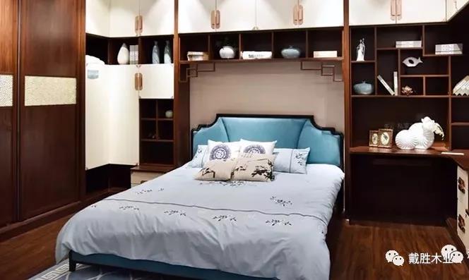 新中式的臥室一般選用安靜沉穩(wěn)的色調,